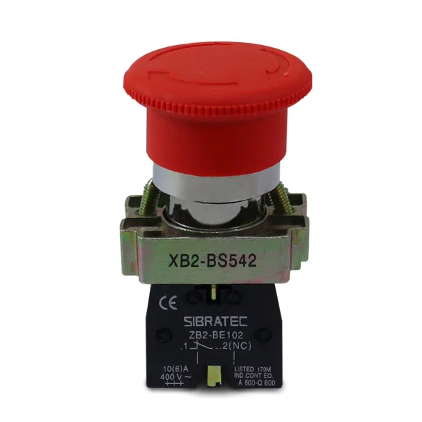 Botão de Emergência XB2-BS542 Metálico Gira Destrava 1NF Vermelho Sibratec